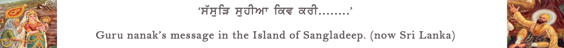Guru Nanak Dev visited the Island Sri Lanka. Many people flocked to hear Guru’s message. The Queen of the island also visited along with her mother- in- law. The mother-in-law asked the queen to bow down and pay respect to the Guru but she refused to bow saying she could not bow because her breast are so heavy. She was proud of her beauty and youth.