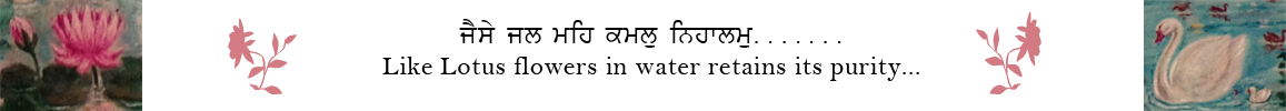 The Guru’s name is the only way to cross the terrifying world of ocean. As the lotus flower remains pure inspite of growing in the dirty water, a person can also have control over the worldly attractions by keeping the God’s name in his heart. The Gurbani always lays stress on leading a householder’s life and also remembering God. Only with God’s name the person can attain salvation and can fulfill the real purpose of our life.